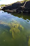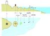 ... På papirkartet brukes kryss opp til 0,5 meters dybde, mens det brukes stjerne og prikker på grunner som kan komme over vann.
