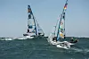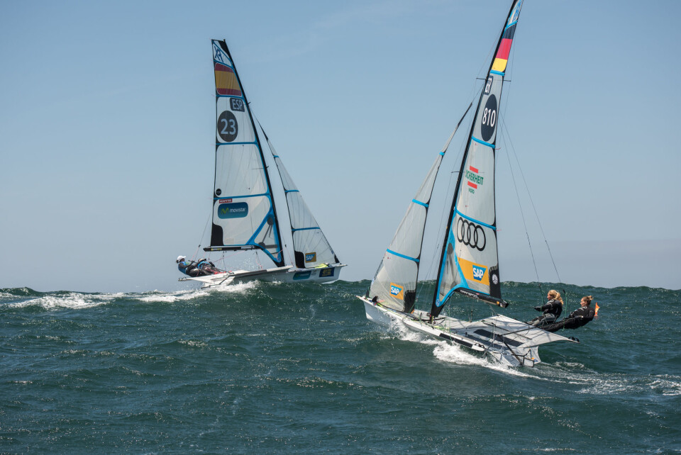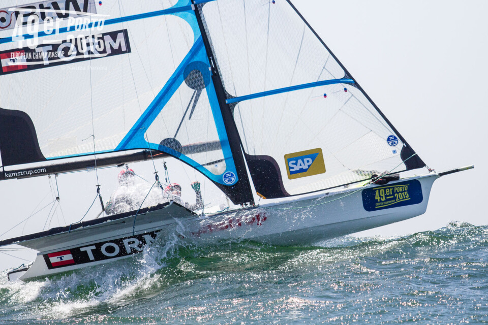 Mer vind og to meter høye atlanterhavsdønninger ga seilerne større utfordringer på den tredje dagen av EM. De norske jentelagene i 49erFX behersket forholdene bra og er begge med i kampen om plassene i medaljefinalen lørdag. Gullfinaler starter idag med både Helene Næss og Marie Rønningen og søstrene Ragna og Maja Agerup på plass.