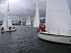 Vi rundet meget nærme bøya (men en stor flåte tett i tett rundt oss). Vi var da på en foreløpig 10. plass i vår klasse.