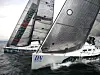 Stort bilde: Friske forhold for finaledeltakerne. Bilde t h: Pareto Forvaltning hadde mer kjøtt på ripa og dro fra Seilas laget i den friske vinden.Alle foto: Linn Krogh Hansen, Seilas