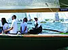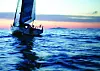 FØR SOLGANGSBRISEN: Det var lett vind for båtene med tidlig start. «Alaska», som seilte i klassen for klassiske treseilere hadde man i masten for å få over lettværsseilet. Og noe galt var fatt, for ved Filtvet måtte de gi tapt fordi masten ikke sto ...