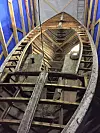BARE SKJELETTET: Grandekket er fjernet og all råte er borte. Bildet er tatt fra hekken og man ser cockpiten og rommet under dekk forover.