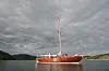 GAMMEL OG NY RIGG: «Storm» var opprinnelig gaffelrigget, og det var utvilsomt et staselig syn å se båten seile gjennom Karmøysundet i 1916. I dag er «Storm» bermudarigget med tre forseil, klyver, fokk og jager.
