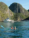 GUIDE: Eirik forteller bestemor om kalksteinsklippene i Phanang-bukten ved Phuket. I noen av dem finnes grotter og nettverk av tunneler.