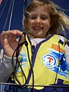 Nanna Scheie er kun seks år, men er allerede dreven i å slå pålestikk rundt rekkestøttene på familiens Hanse 400.