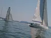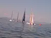 Lederbåtene seiler for vestavind. Tor-Kristian Øines ligger ved Slemmestad som tilskuer. Han melder om 0,9 knop vind fra vest i øyeblikket, og 22 grader i vannet.
