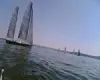 Trimaranen Camilla har passert Slemmestad, som første båt i Færderfeltet. Det blåser 0.9 knop fra vest.