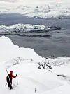 SKI OG SEIL: I vinter har Morten Christensen seilt langs norskekysten på jakt etter fjell som de kan bestige og stå på ski i.