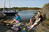 PØLSER: Deler av mannskapet satset på å grille pølser fremfor å spise rå østers. Fra venstre: Mette, Håvard og Amalie.