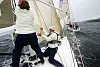 Thomas Føyen fortalte at de etter en velykket dag i går, slet med riktig trim i dag i den kraftige vinden. I første seilas prøvde de seg uten rev, men med en liten fokk. Det ga dårlig balanse i båten. Med et rev gikk det bedre, men riggen må trimmes. På lens gikk det fort. Vi var oppe i 14 knop, forteller Thomas.