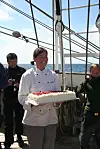 En av de frivillige hadde også bursdag om bord denne dagen. Else Mari Ødegaard Jensen fylte 22 år, som ble feiret med god jordbærbløtkake på stordekk. Godværet hadde også tittet frem, og stemningen på stordekket var utrolig hyggelig.