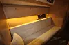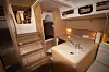 Interiøret er i lyst treverk og hvite tekstiler. Vinduer i skrog og dekk, samt rikelige med luker, gir mye lys under dekk.