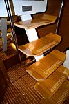 Bak leideren er dørken senket, og lager en kort gang. Fra denne gangen er det hele fire dører. Det blir litt trangt. Her kommer man inn til det aktre badet, samt to akterlugarer. Det er også plass til en køyelugar mot styrbord skrogside.