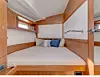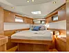 Design og interiør er moderne og innredningsløsningen skaper assosiasjoner til ferieleiligheter. Cockpiten er rene uteterrassen, og badeplattformen blir nesten som en egen brygge. Salongen ligger under en stor hytte med brede vindusflater og mange luker. Den er som en stue med langsgående bysse på babord, bar i midten og salong på styrbord. Videre forover er det to store kabiner og to bad med dusj og toaletter. Forpiggen er en gedigen rederlugar.