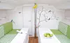 Sunbeam 36.1 med avantgarde innredning. Hvit salongbord er nytt. Grønne uter vekker oppsikt. Spennende å se om denne utgaven kommer til mesen, eller om de viser frem båten i standard versjon.
