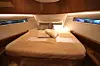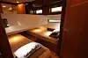 Under dekk er det tre kabiner og to bad. Interiøret er i hel teak, som er slipt og avrundet så det er en fryd for øyet. Alle detaljer oser av kvalitet. Helt forut er ankeret plassert på en arm, som heves opp fra en luke når man skal ankre, og ellers ligger det trygt lagret under dekk.