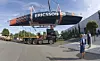Ericsson Racing Teams nye båt måtte ty til Stockholms gater da den idag skulle transporteres til Sune Carlssons verft i Saltsjøbaden.