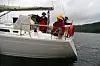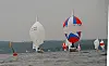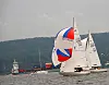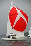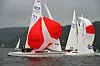 Første seilas foregikk i to-tre sekundermeters vind og vekselsvis regnbyger.