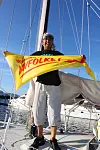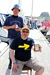 SOSIALT I GJESTEHAVNEN: Svenske slagere slår alltid an blant seilerne. Her er det en av gutta fra nabobåtene som underholder i Farr 40 "Palander".