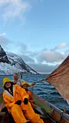 – Vi har hatt en frisk og spennende seilas med tre programledere for NRK "Ut i Naturen "i Ersfjorden på yttersiden av Senja, forteller Kundan Rockstad ved Lenvik museum. Anledningen for seilasen var opptak til Tv-programmet "En Naturlig Helaften", som går søndag 22.desember på NRK 1 kl 20.15-23.00