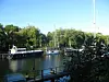 VENTEHAVN. Havna i Holtenau er liten, omringet av høye trær og egnet for fartøy som skal gjennom kanalen.