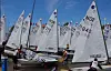 Deretter startet gutta. Vi så fra land at feltet hadde en kjempefordel på babord side. Vi finkjemmet feltet med jaktkikkerten til Larsen og stemmingen sank til bunns! Lengst ute på styrbord lå Kristian, Lars, Håkon og Lars Jørgen. Og finnen lå på babord! Vi håpte i det lengste, men finnen seilte godt, og de norske klarte ikke å seile seg nevneverdig oppover. Eneste trøsten var at danske Pascal, som truet Kristians sølv, også valgte styrbord banehalvdel. Han rundet rett bak Lars på 57 plass! Da var saken klar og Kristian unnlot å gå i mål i siste race da det likevel måtte bli hans strykplassering. Vinden løyet ytterligere og jentene som lå foran på banen ble tatt igjen av herrefeltet. Arrangøren fikk en stri tørn med målgangen da både gutter og jenter gikk i mål samtidig.