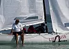 I går så det bedre ut, litt vind fra morgenen av og første starten gikk som planlagt. Asbjørnsen ledet igjen ut fra start og hadde samme farten og ledet klart igjen på toppmerket. I bunne viste det seg at de hadde valgt feil vei og rundet som nr 5. I mål fikk de med seg en 5. og en 6. Det andre norske laget ligger på en 14. plass etter første dag. Laget som består av Ketil Solvang, Terje Antoniusen og Vidar Tregde har nok mye å gå på. På telefon forteller de seg godt fornøyd med dette.