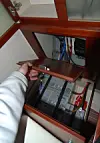 Nelson Marine konstaterte at cellene i batteriene var ødelagt og eieren får nå montert helt nye batterier i sin båt. De antydet at batteriene kan ha tatt skade av ekstremt strømforbruk, noe vi benekter. Vi så at spenningen var lav alt ved overtagelse, og vi prøvde å topplade med landstrøm natten før vi dro. Batteribanken bestod av to forbuksbatterier på 110 Ah, et 110 Ah til ankervinsjen og et startbatteri.