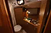 Under dekk finner vi en stor og åpen salong med aktervendt kartbord og kontrollpanel på babord side. Byssa er på styrbord side, og det er også akterlugaren. På babord side er det et stort bad med egen dusjlomme. Forpiggen er ustyrt med hyller hele veien rundt.