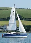 FLERSKROGSBÅTER: Kompakt katamaran: Aventura 34 er konstruert av franske Samer Lasta og bygget i Tunisia. Designeren har klart å følge normen for moderne katamaraner, og krympet den ned i rekordkompakt størrelse.