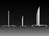 Den eksisterende L'Hydroptere, prototypen som nå bygges på 11 meter og maxi utgaven som skal sette rekorder til høyre.