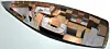 Cockpiten er også delt opp. Fra bakre cockpit er arbeidscockpiten. Herfra styrers båten og seilene betjenes. Cockpiten foran er for passasjer. Her er det fritt for tauverk. Cockpiten er nærmest satt oppå dekk. Det gjør at plassen under cockpiten kan utnyttes makimalt. Det gjør at båten har usedvanlig stort volum under dekk.