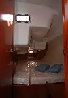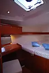 På tegningen ser begge akterkabinene like ut, men i virkeligheten er de to av to forskjellige verdener. På syrbord side er det to luker til stuerom fra cockpiten. Det stjeler plass fra den ene akterlugaren. I babord akterlugar er det hele fire åpnbare vinduer. Den ene ut mot hekken som gir lugaren mye lys og kjør den spesielt trivelig.