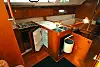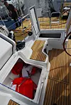 I Oceanis 37 er belysningen satt av et wirestrekk med spotter. Det er første gang jeg har sett i en båt. Byssa er stor, med en brønn for vinflasker, kjøleskap med kapasitet til å kjøle ned en hel kasse øl, men skuffer til kniver og gafler mangler. Rundt salongen kan det sitte mange, så har kan du ta med dine venner.