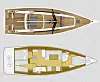 Cockpitbenkene har L-form. Alle liner og fall er trukket bak til rormannen. Båten er tegnet for selvslående fokk.