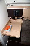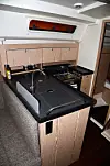 Det er særlig cockpiten som er den store forskjellen mellom nyheten, og båten den erstatter. Med doble ratt blir cockpiten like funksjonell som sine større søsken. Overraskende nok er det god plass til både doble ratt og et cockpitbord. Båten er svært bred i hekken, og cockpiten er maksimert ut mot ripa, og dekket forsvinner nesten helt bakover.