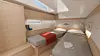 Under dekk har båten en relativt konvensjonell planløsning. Det tradisjonelle kartbordet er fjernet. I setdet er det et stort bad med egen dusj, også akter. Byssa minner om Bavaria 46 Vision, men på Grand Soliel er nedgangen satt i senter.