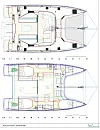 I salongen er det kun en liten forkostdinett og bysse. Uteplassen er ikke bare beskyttet over, men har også glass på siden i første del, slik at man kan sitte ute lunt å spise. Mens Lagoon har en oppreist styreplass i cockpiten med sikt over hytta, har Nautitech utstyrt sin nyhet med to ratt, plassert i hvert skrog. Som Lagoon 39 leveres Nautitech 40 Open med to bad, og tre eller fire lugarer.