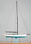 Seilarealet er stort, men trykksenteret er holdt lavt takket være det lange baugsprydet. Riggen er naturligvis i kullfiber. Båten vil ha en selvsålende fokk på indre forstag og en slørefokk på ytre forstag.