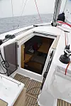 BRA: Oceanis 35 har en stor nedgangsluke og en slak leider. Cowboydører er også et pluss. Dufour 350 har en tung luke som må stues vekk.