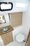 BAD: Toalettet deler løsning på båtene. Det holder akkurat. Dufour.