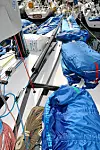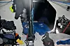 Når Seilas besøkte båten lå gutta fremdeles i køyene for å samle krefter etter HH Skagen Race. Køyene ligger på rad og rekke bakover på siden av cockpiten. Som på en Volvo Ocean Race båt må du åle deg til køys. Her finnes det en do, men den står åpent foran skottet ved masten.