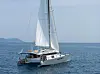 TORTUE 147 skiller seg ut. Katamaranen i aluminium er bygget rundt det gode liv om bord, og blir bygget i organiske materialer i myke toner inspirert av sjø, himmel og sand. Du får tre lugarer og to bad. Overbygget er pepret med solcellepaneler. Selskapet bak fartøyet er fra Sveits, og katamaranen bygges i Tunisia. Prisen starter på 16,2 millioner norske kroner.