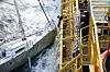 Slepefartøyet «Tor Viking II», registrert i Sverige, ble kalt opp for å gi soloseileren assistanse etter at franskmannen hadde sendt ut nødsignaler. Isbryteren fikk en tøff oppgave, noe som filmen, som er tatt opp av et redningsfly som bidro til redningen, viser.