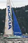 Formula 60-trimaranen er på vei inntil Drøbaksundet.
