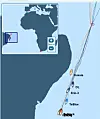 Feltet seiler sydover, faktisk litt vest for syd. Den faktiske kursen er sydøst. Fordi båtene ikke nærmer seg målet i noe større grad blir også resultatlisten feil. Den måler avstanden til mål.