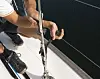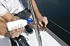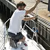 - Fortøy båten slik at mastekranen kan nå ut loddrett over mastefoten. Vel plassert ved mastekranen bør det gå litt kjapt – det er gjerne kø, og det er god oppførsel å ha forberedt mest mulig på forhånd.