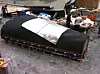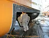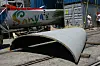Båtbyggerne går drastisk i vei. Med en sirkelsag ble det skadete området kuttet. Den nye delen ble bygget litt for stort, fordi det var litt usikkert hvor stor skaden er. Båten ble derfor kuttet opp i biter rundt skaden.