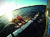 – Jeg skal aldri seile rundt med bly i båten igjen! Harald Blom-Bakke er klar i sin tale mens vi flyr avgårde lavt over vannflaten – hengende i hver vår trapes.