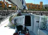 Vi fikk komme om bord i den tyske båten, en Akilaria Class 40, og ble litt kjent med de to guttene Boris Herrmann og Felix Oehme, som satser på å vinne. De er begge tidligere erfarne jolleseilere og Herrmann har tidligere også deltatt i Minitransat.